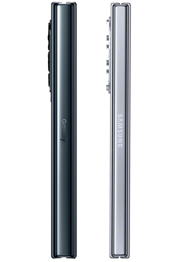 최근 공개된 Z 폴드5 vs Z 폴드4의 힌지 두께 렌더링 비교 이미지다.